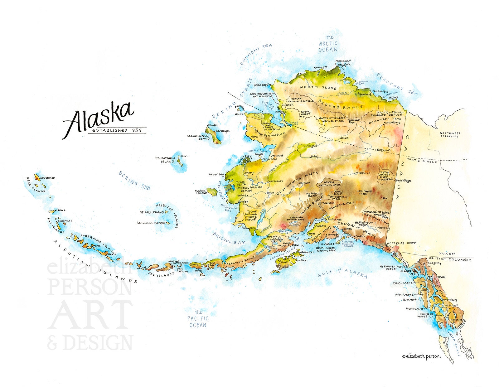 Alaska Map Watercolor Illustration State Of Alaska Anchorage Etsy Australia
